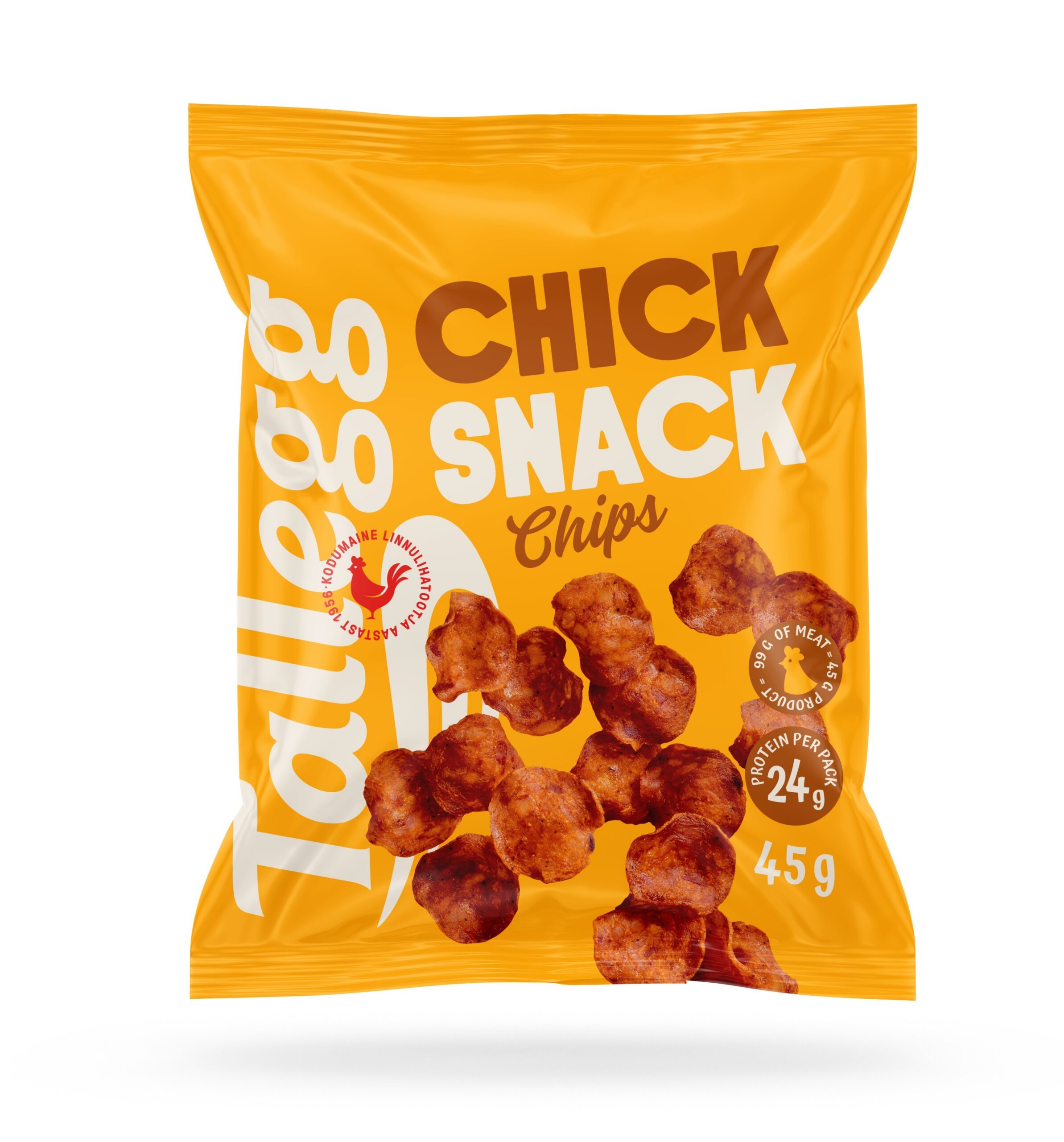 Chick Snack Crispy is something completely different – a crispy, crunchy meat snack that resembles chips in both form and eating experience. It is made from chicken sausage, sliced paper-thin and then slowly oven-dried until perfectly crisp. That’s where the name Crispy comes from – like chips, but made of meat.